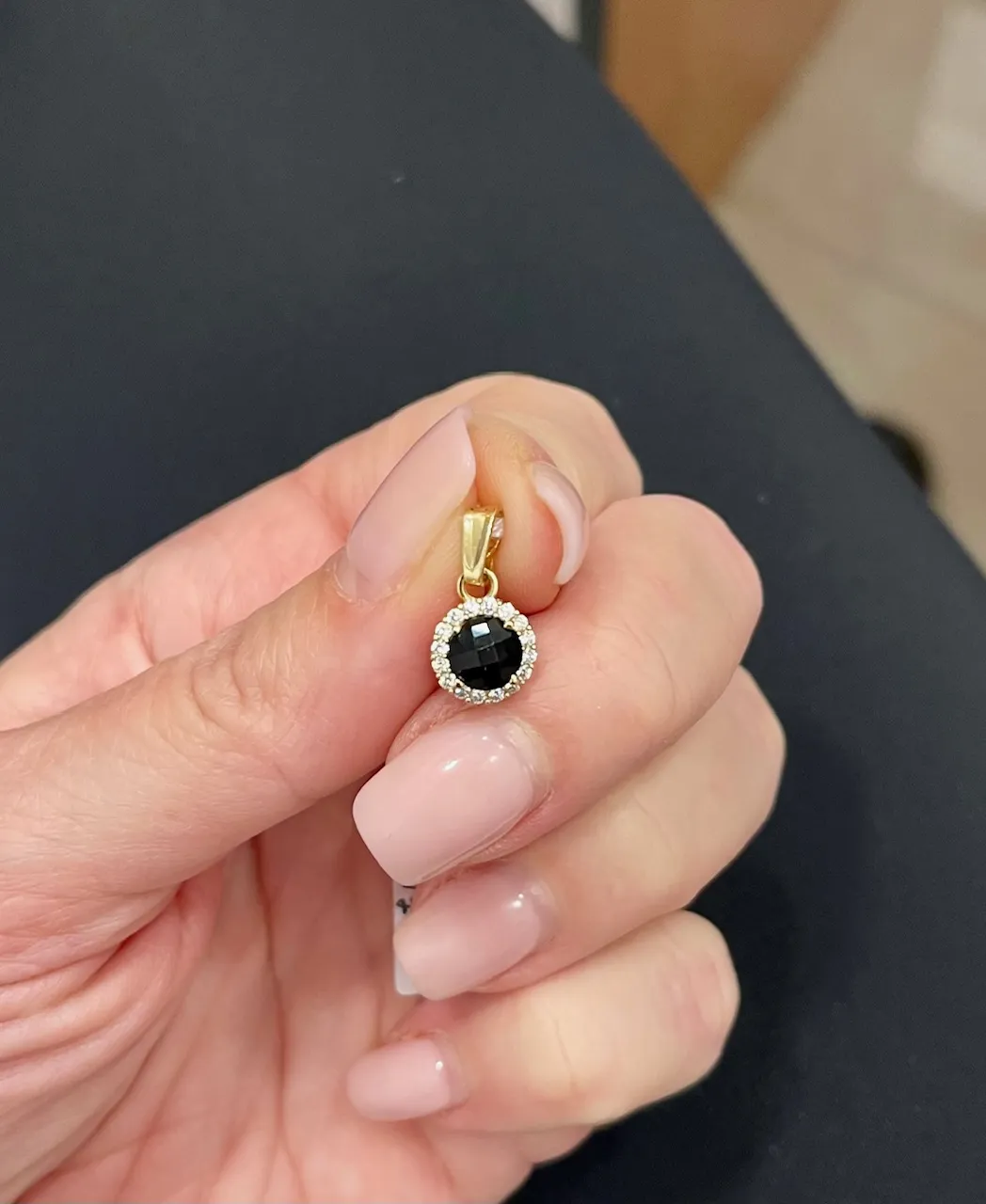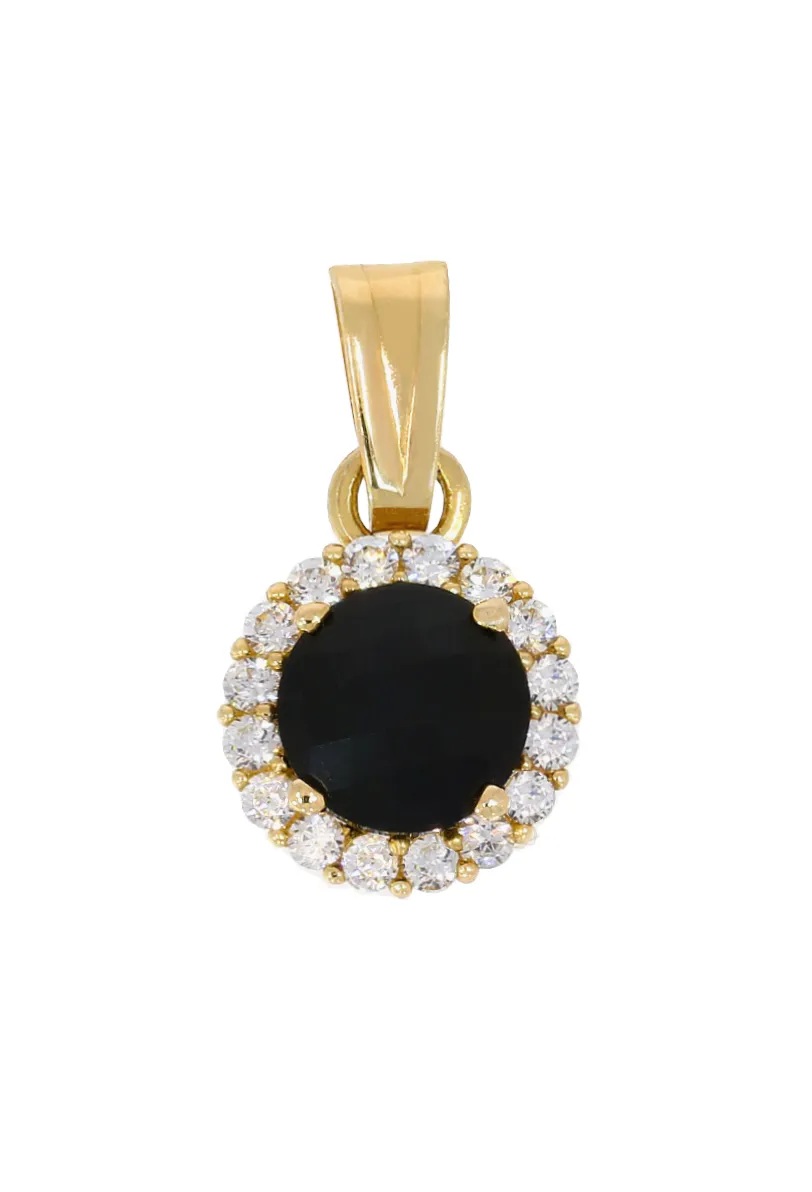Krásny zlatý prívesok, ktorého dominantou je čieny, okrúhly, krásne brúsený zirkón. Ten po obvode dopĺňajú drobné biele zirkóny, ktoré dodávajú šperku krásny lesk.