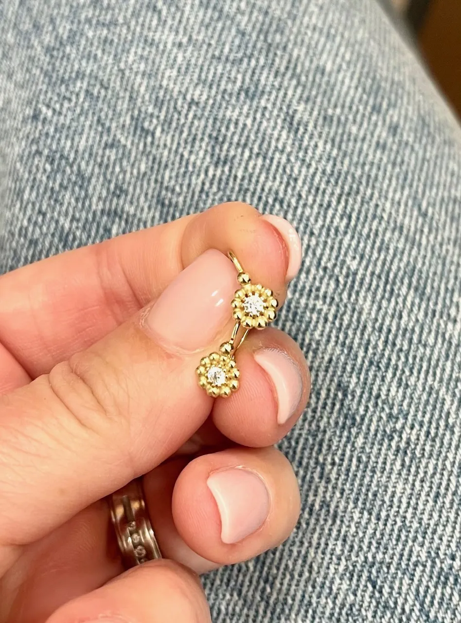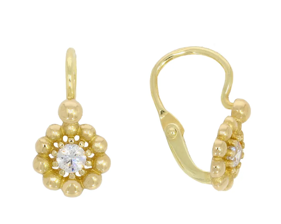 Detské zlaté náušnice 3332 180 € Detské zlaté náušnice vyrobené v tvare kvetiny zdobené zirkónmi. Do košíka