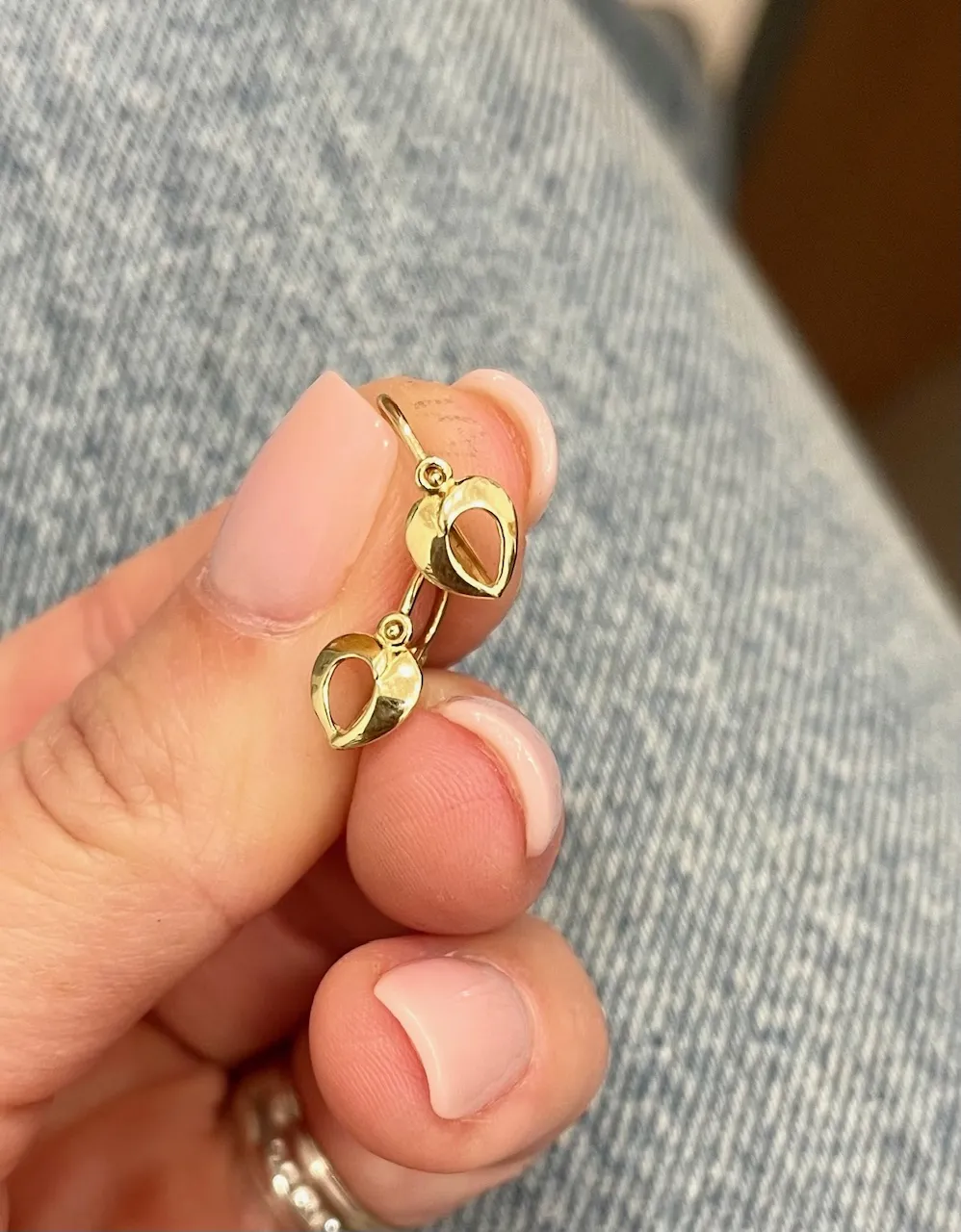 Pekné náušničky vyrobené zo žltého 14 karátového zlata v tvare srdiečok sú vhodné pre dievčatká už od narodenia. Náušnice sú vhodné aj ako darček napríklad na krstiny.