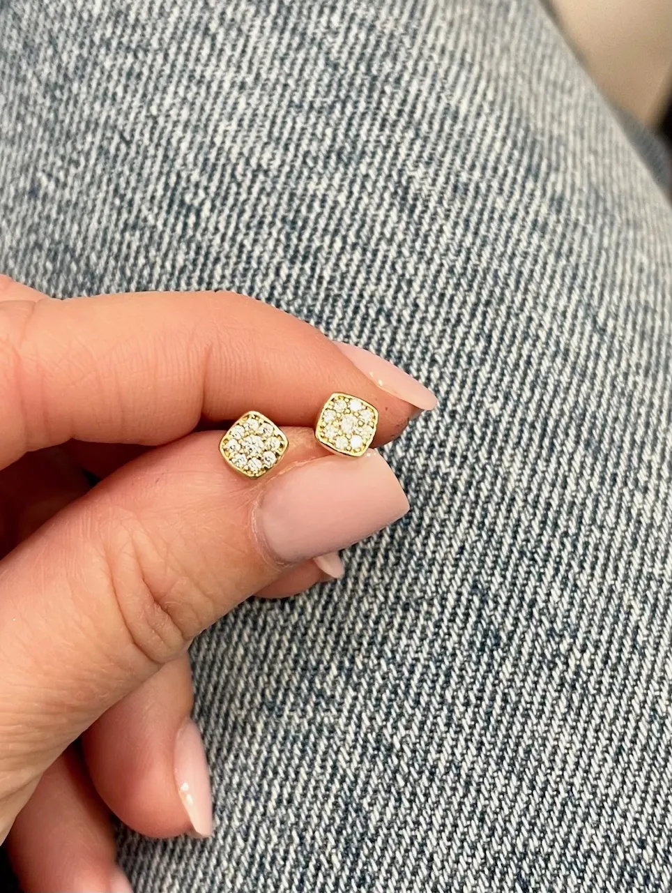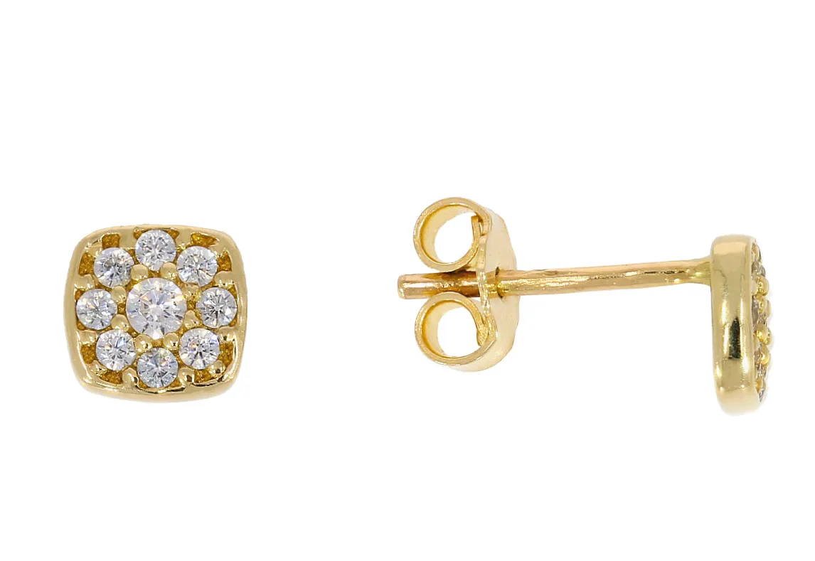 Krásne náušnice vyrobené zo žltého zlata zdobené množstvom bielych zirkónov.