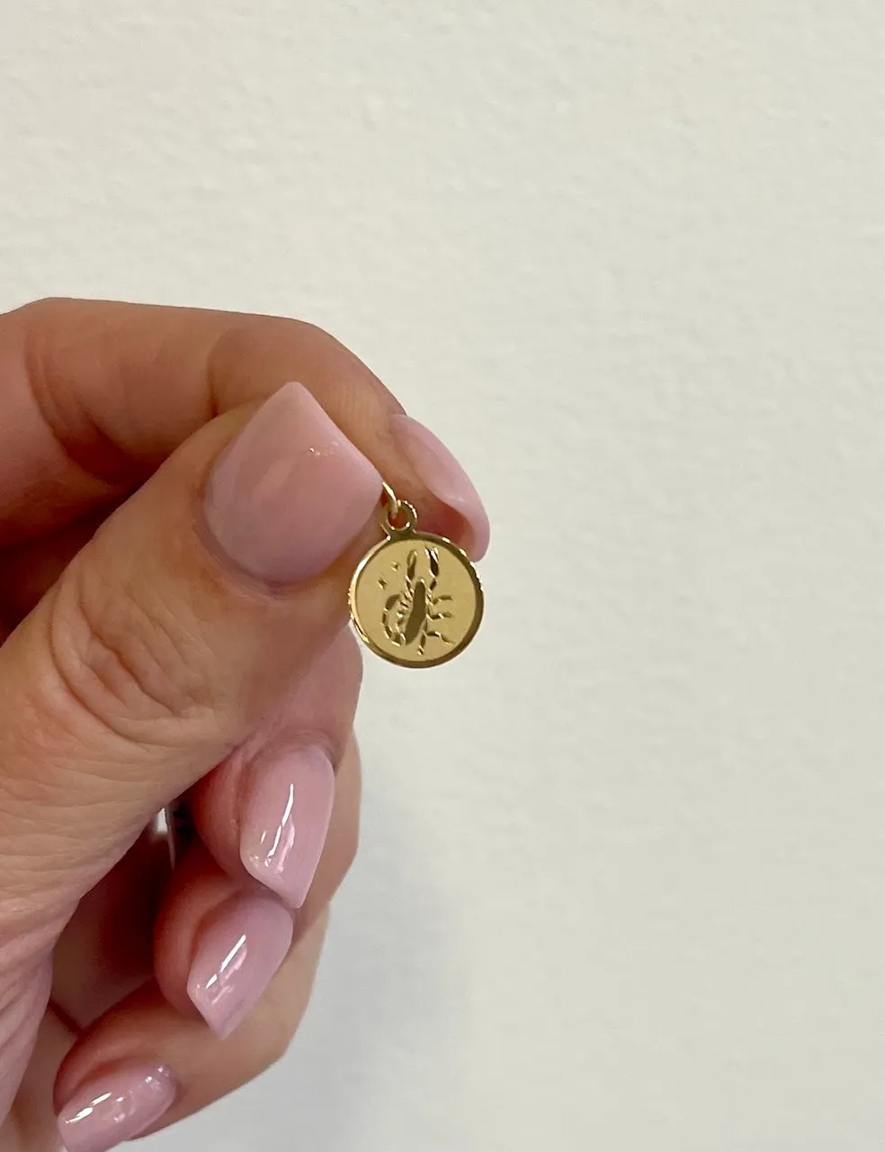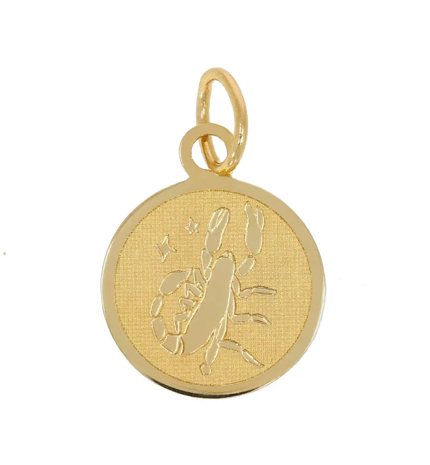 Znamenie škorpión zdobí platničku zo žltého zlata.