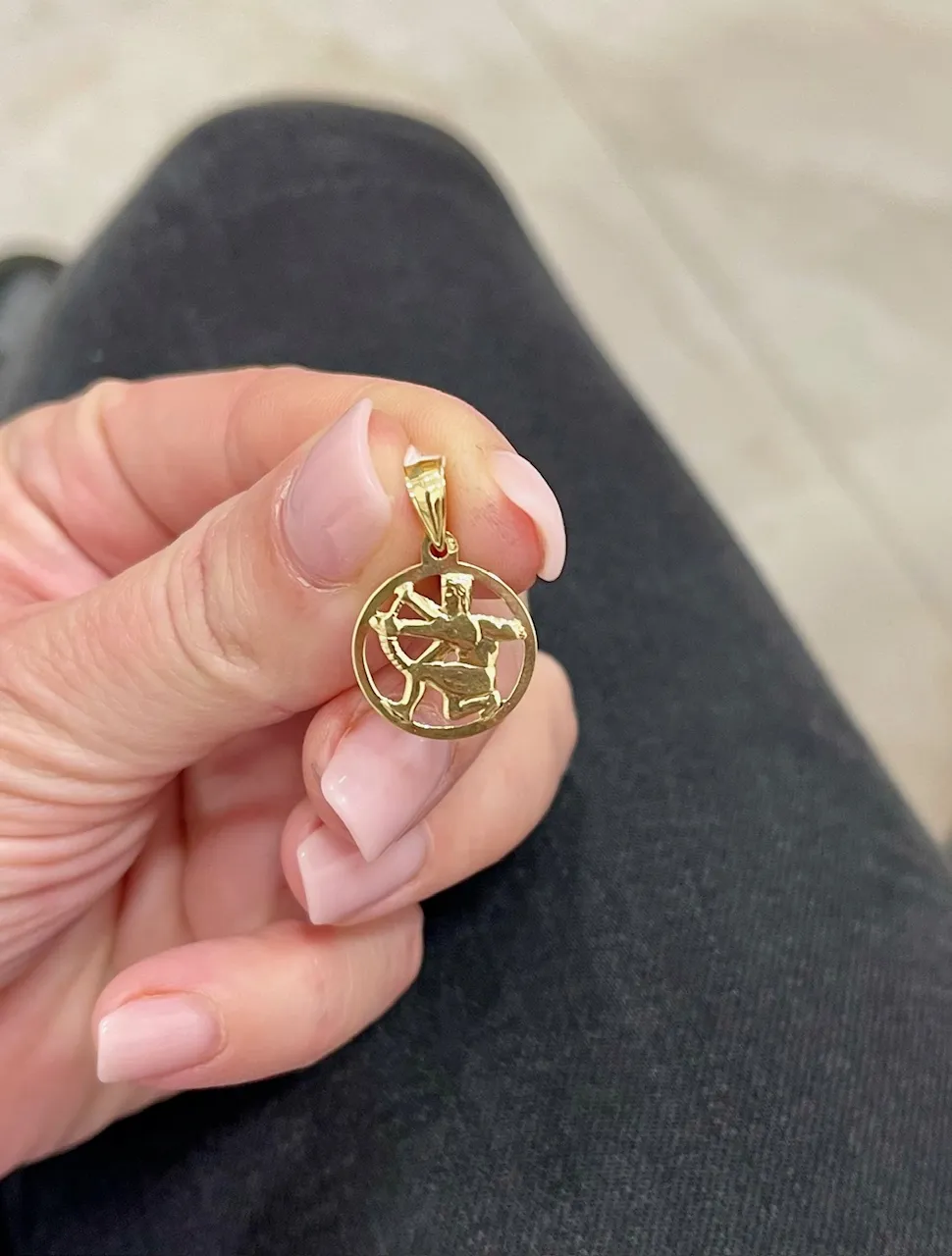 Pekný prívesok vyrobený zo žltého 14k zlata v motíve strelca. Prívesok má lesklú povrchovú úpravu a je vhodný aj ako darček.