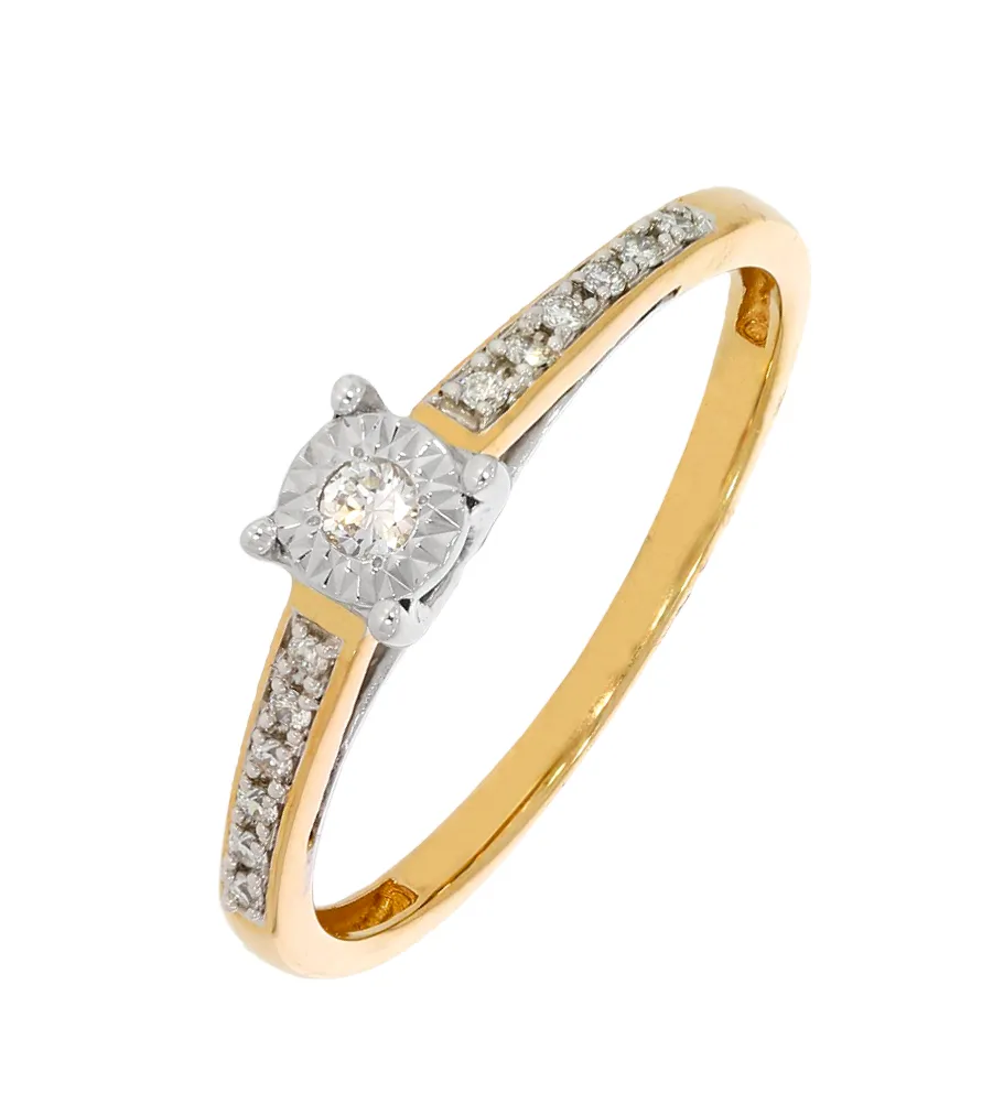 Darujte dokonalý šperk v podobe zlatého prsteňa, ktorý zdobia prírodné diamanty v celkovej váhe 0,10ct. Prsteň je vyrobený kombináciou žltého a bieleho 14 karátového zlata a je ideálny aj ako zásnubný. K šperku patrí tiež certifikát potvrdzujúci pravosť diamantov.