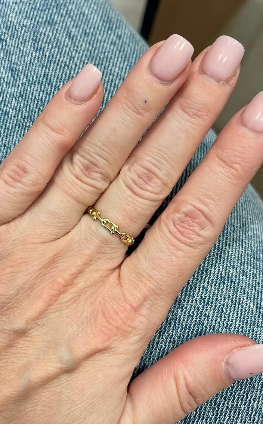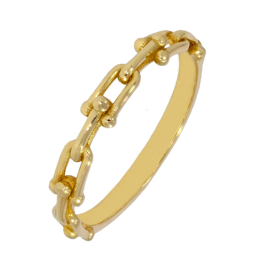 Pekný zlatý prsteň vyrobený zo žltého 14 karátového zlata s lesklou povrchovou úpravou. Prsteň má moderný dizajn, ktorý očarí každú dámu.