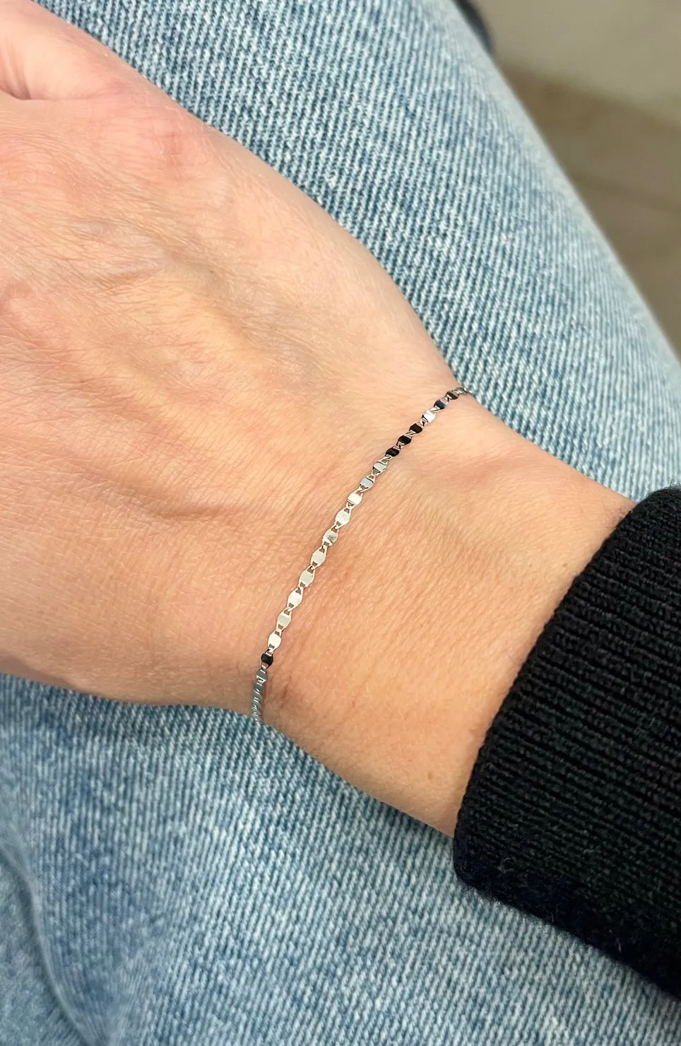 Pekný náramok z bieleho 14 karátového zlata s lesklou povrchovou úpravou.