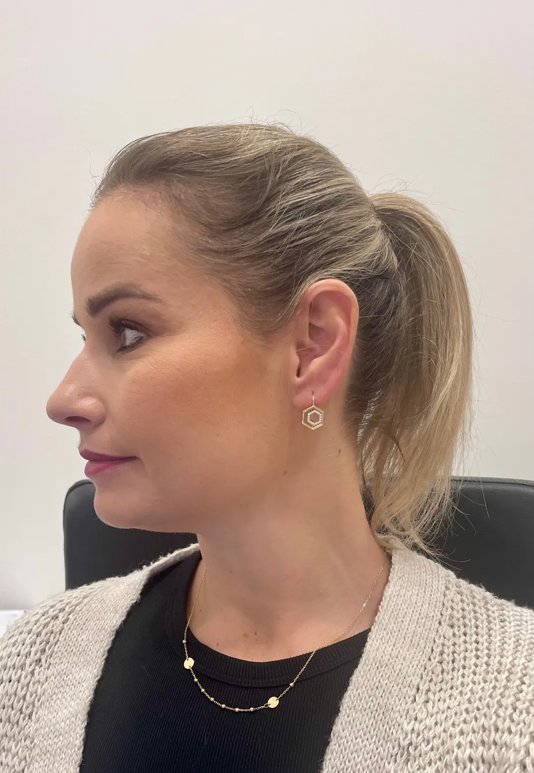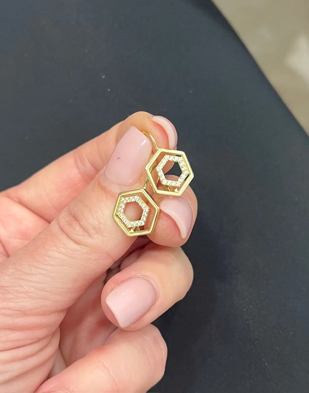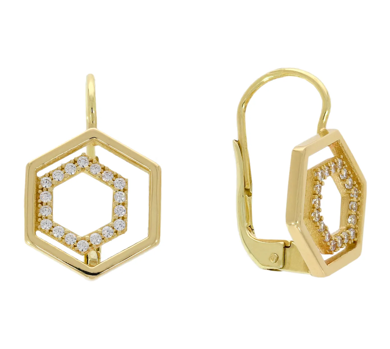 Krásne zlaté náušnice zdobené bielymi zirkónmi Vás okúzlia svojim jedinečným dizajnom.