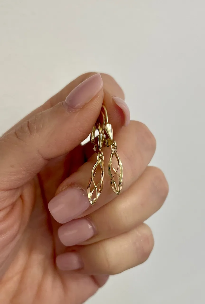 Krásne visiace náušnice vyrobené kombináciou žltého a červeného zlata v tvare špirály. Náušnice majú praktické patentové zapínanie a sú vhodné aj ako darček.