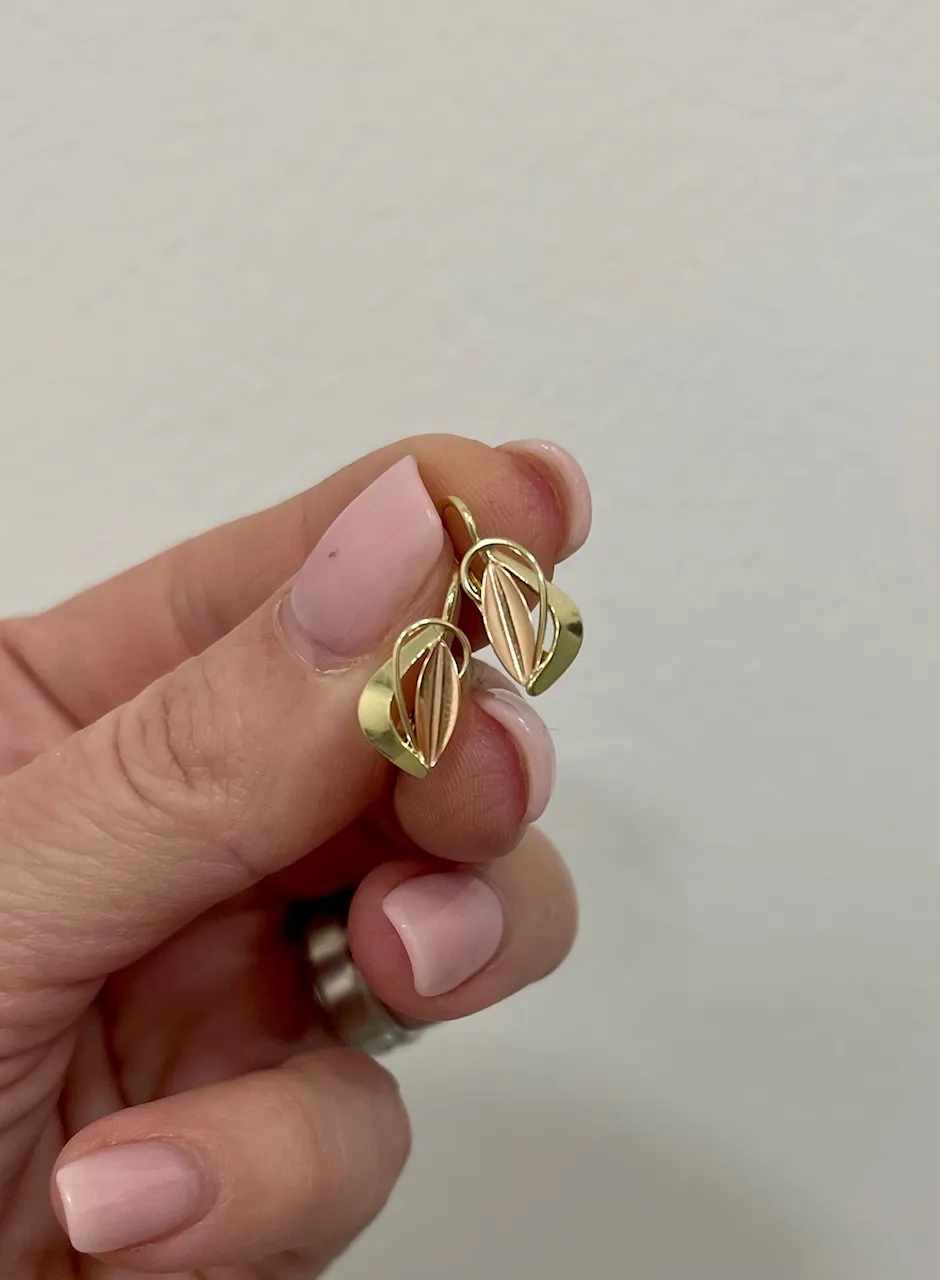 Pekné zlaté náušnice s klasickým dizajnom sú ideálnym darčekom pre dámu. Vyrobené sú kombináciou žltého a červeného 14 karátového zlata a majú zapínanie v tvare patentu.