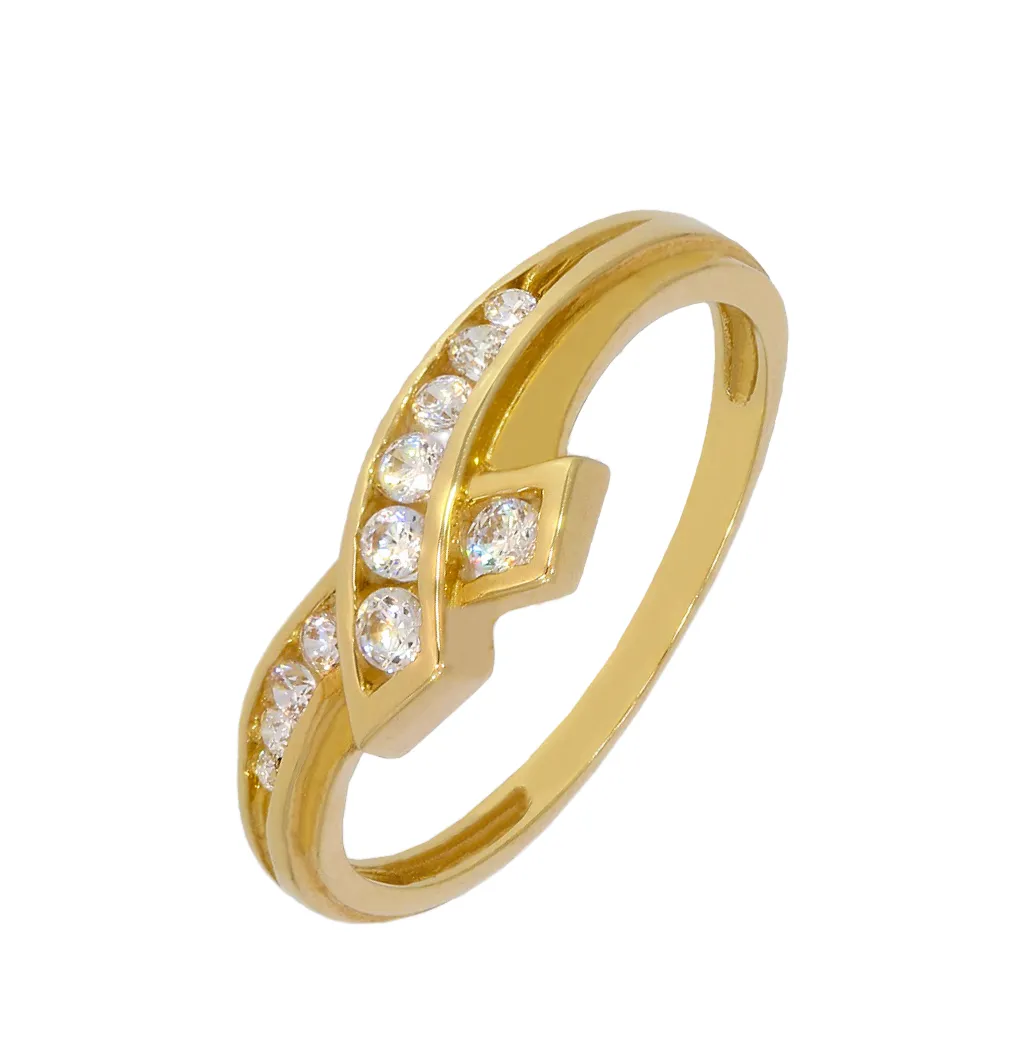 Pekný prsteň vyrobený zo žltého 14k zlata je zdobený žiarivými bielymi zirkónmi.
