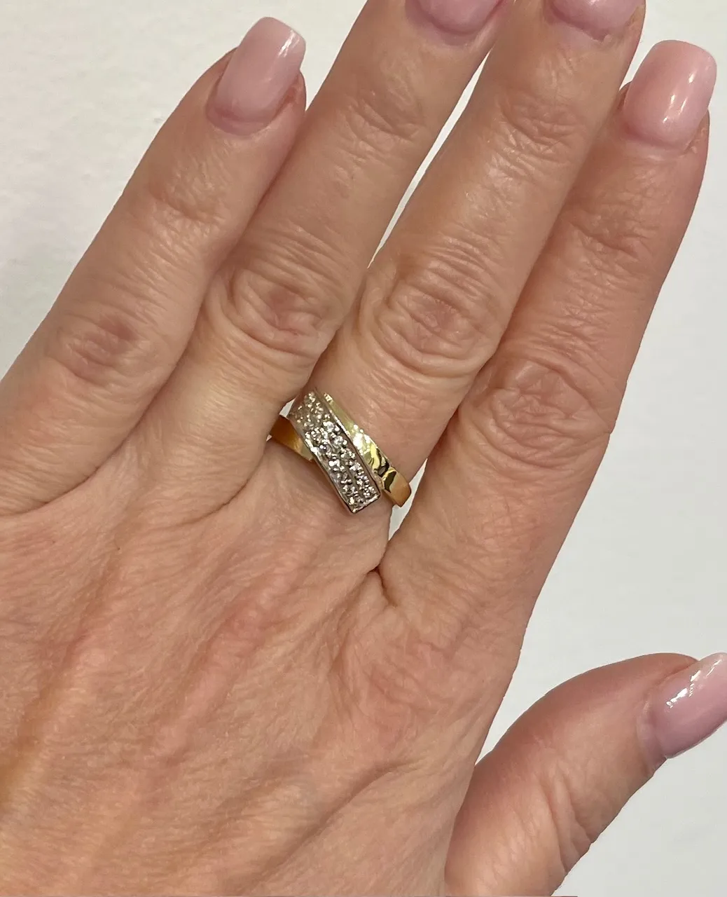Buďte jedinečná aj vďaka modernému zlatému prsteňu, ktorý dekorujú biele žiarivé zirkóny. Prsteň je vyrobený zo žltého 14 karátového zlata a je ideálny aj ako darček.