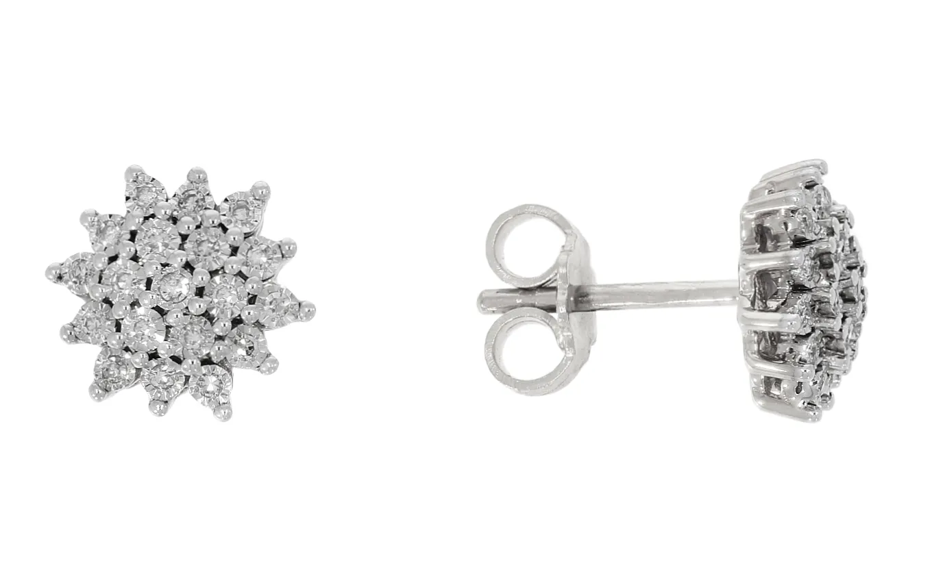 Skutočne nádherné náušnice vyrobené z bieleho 14k zlata zdobia prírodné diamanty v celkovej váhe 0,13ct. Tento dokonalý šperk krásne vynikne tak v bežné dni ako aj pri slávnostnej príležitosti. K náušniciam patrí tiež certifikát potvrdzujúci pravosť diamantov.