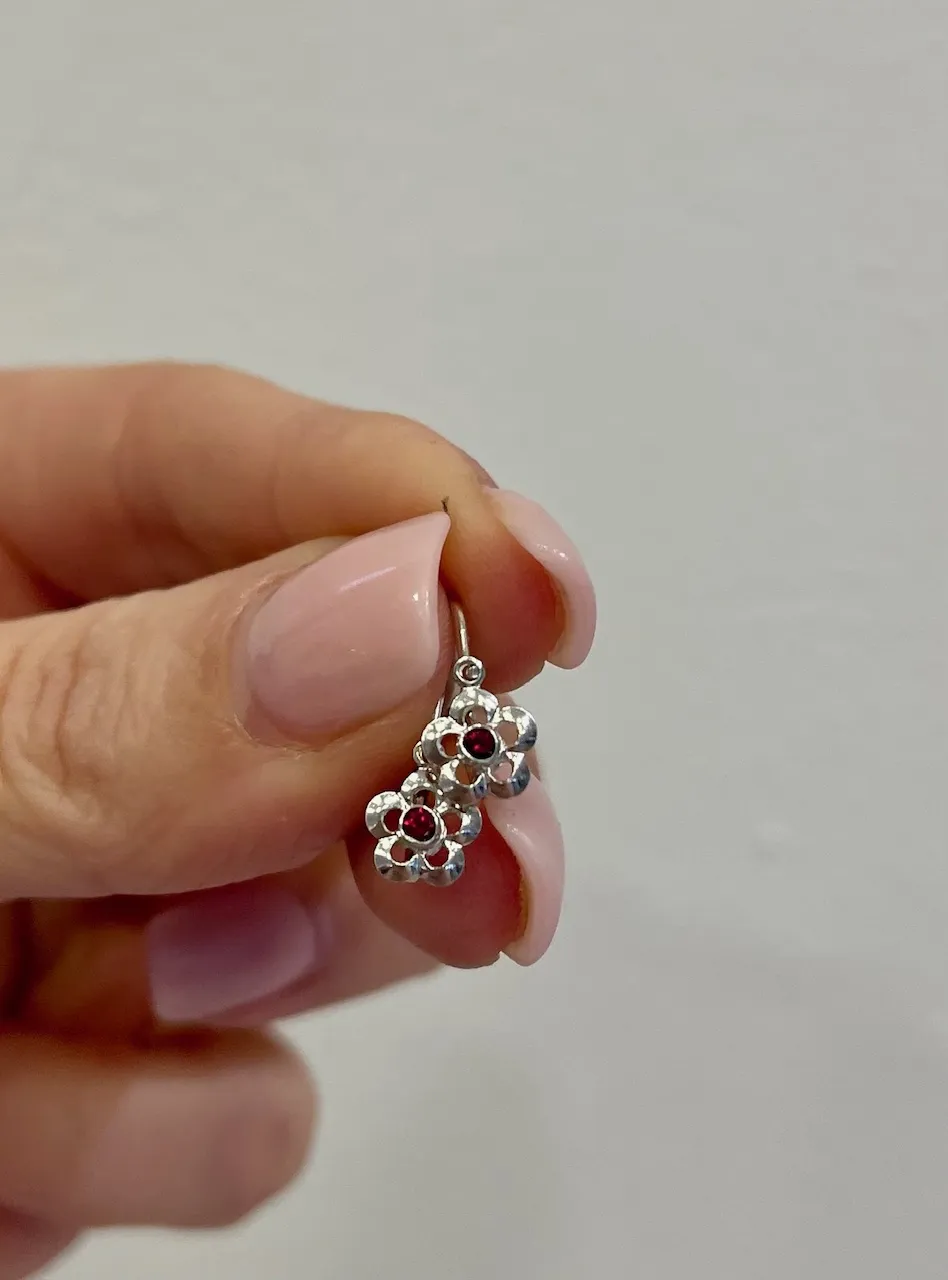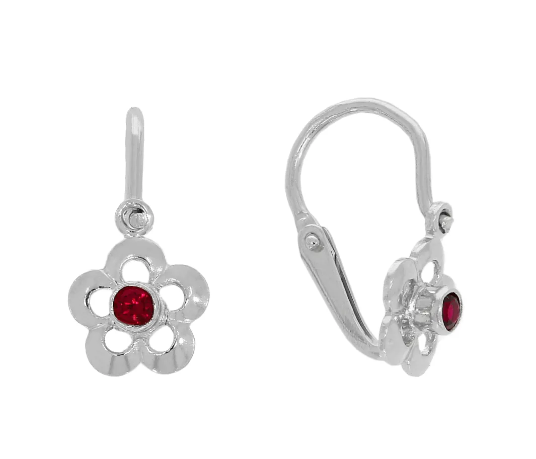 Krásne kvetinky vyrobené z bieleho 14 karátového zlata zdobí v centrálnej časti dominantný tmavočervený zirkón. Náušnice majú hladkú, lesklú povrchovú úpravu a sú vhodné už od narodenia.