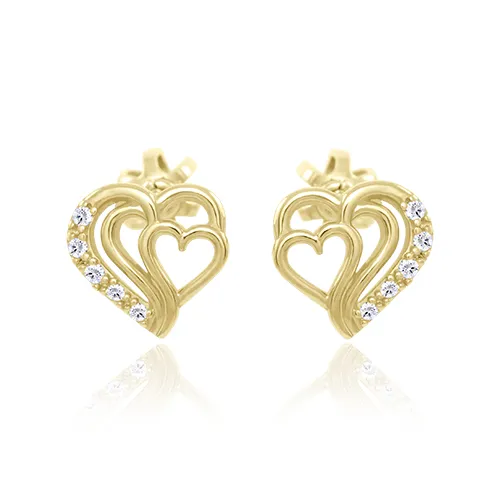 Srdiečkové náušnice vyrobené zo žltého 14k zlata zdobia biele zirkóny. Náušnice majú bezpečné šrobovacie zapínanie.