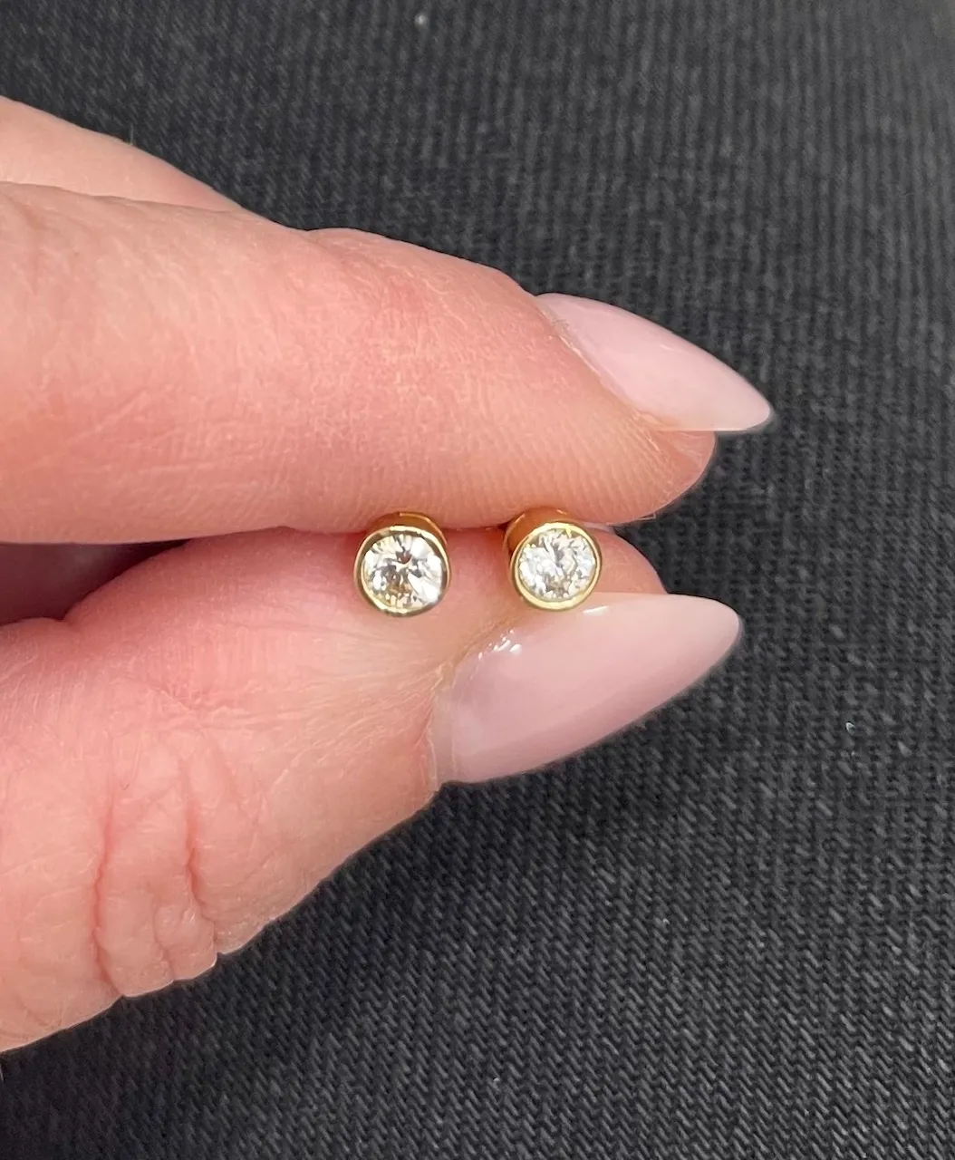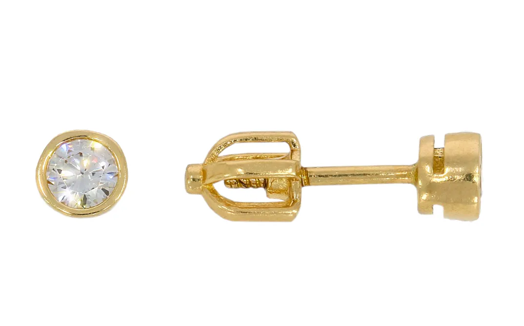 Pekné šrobovacie zlaté náušnice ideálne na každodenné nosenie sú dekorované okrúhlym zirkónom v hladkom ráme. Náušnice sú ideálne aj ako darček.