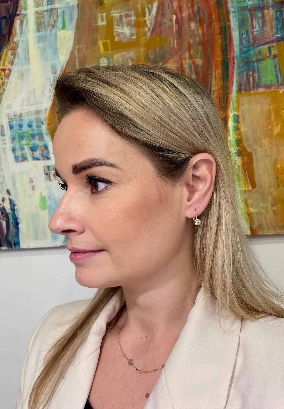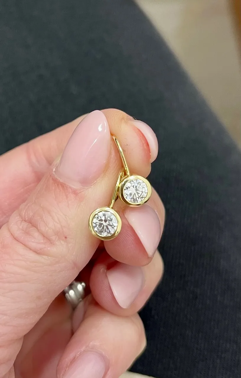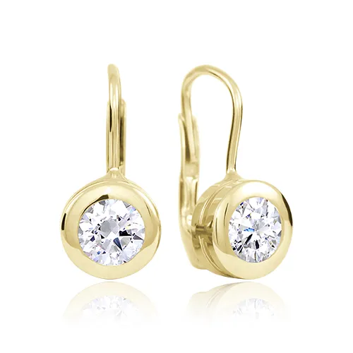Pekné náušnice zo žltého 14 karátového zlata zdobené okrúhlym zirkónom v hladkom lesklom ráme.