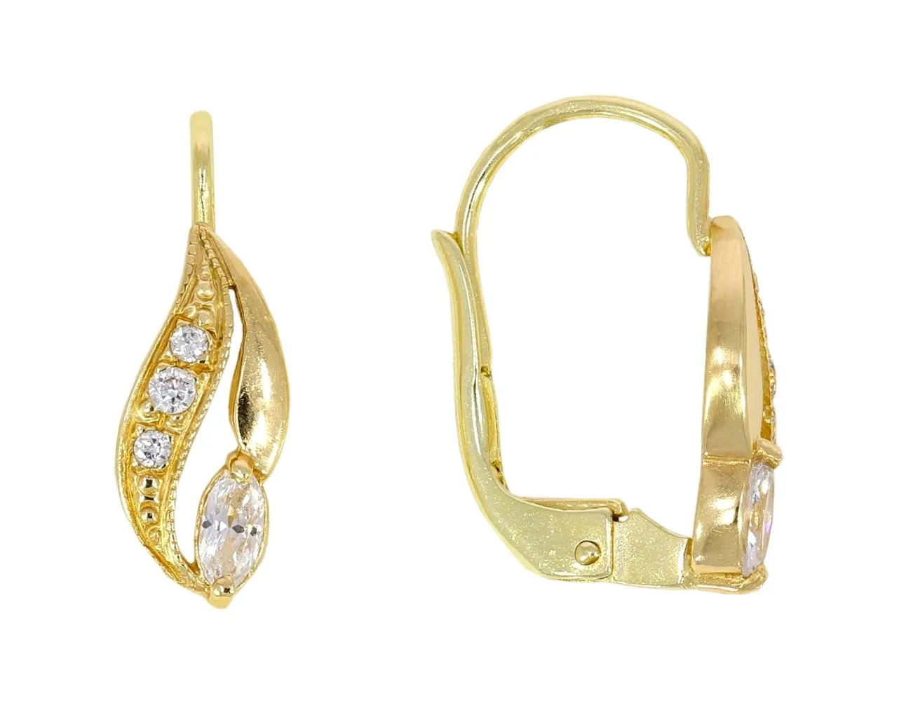 Krásne náušnice vyrobené zo žltého 14k zlata zdobené bielymi zirkónmi sú ideálnou voľbou na každodenné nosenie.