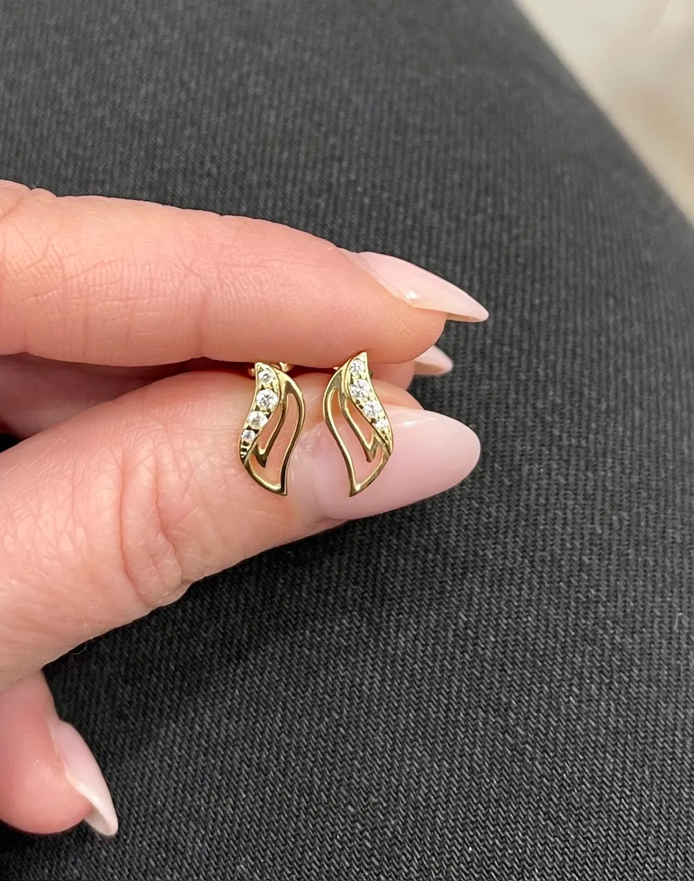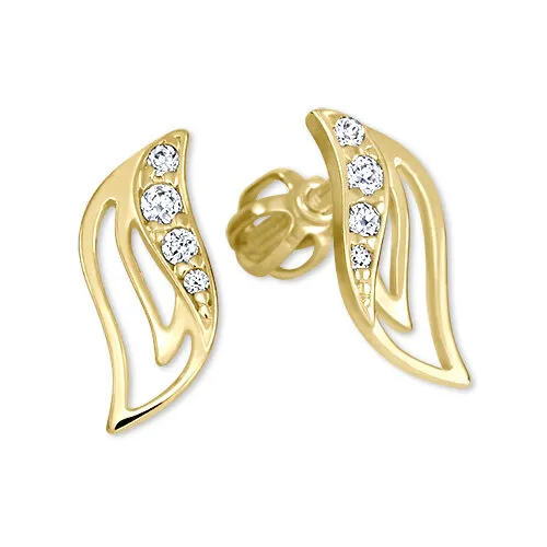 Pekné zlaté šrobovacie náušnice zdobené zirkónmi vhodné na každodenné nosenie.