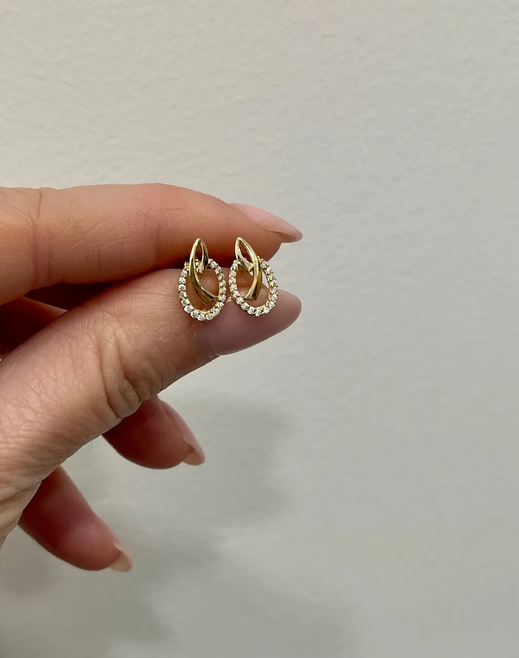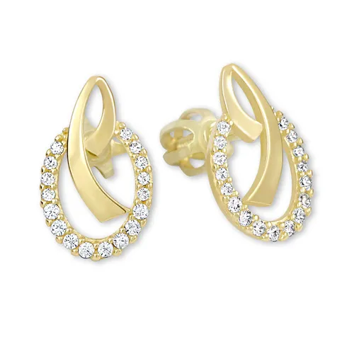 Krásne náušnice vyrobené zo žltého 14k zlata zdobené množstvom zirkónov. Náušnice majú bezpečné šrobovacie zapínanie a sú vhodné aj ako darček.