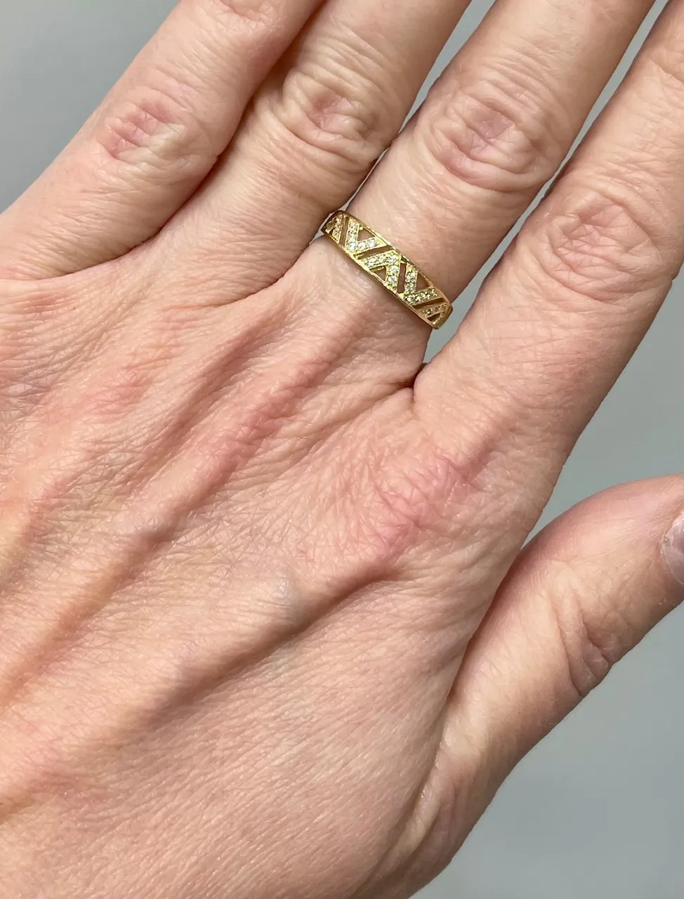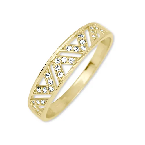Elegantný zlatý dámsky prsteň zdobia drobné biele zirkóny.