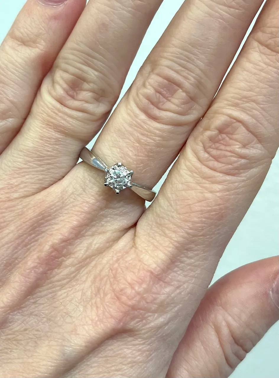 Darujte svojej polovičke dokonalý diamantový prsteň z bieleho zlata. Šperk zdobí prírodný diamant 0,25ct ku ktorému patrí tiež certifikát.