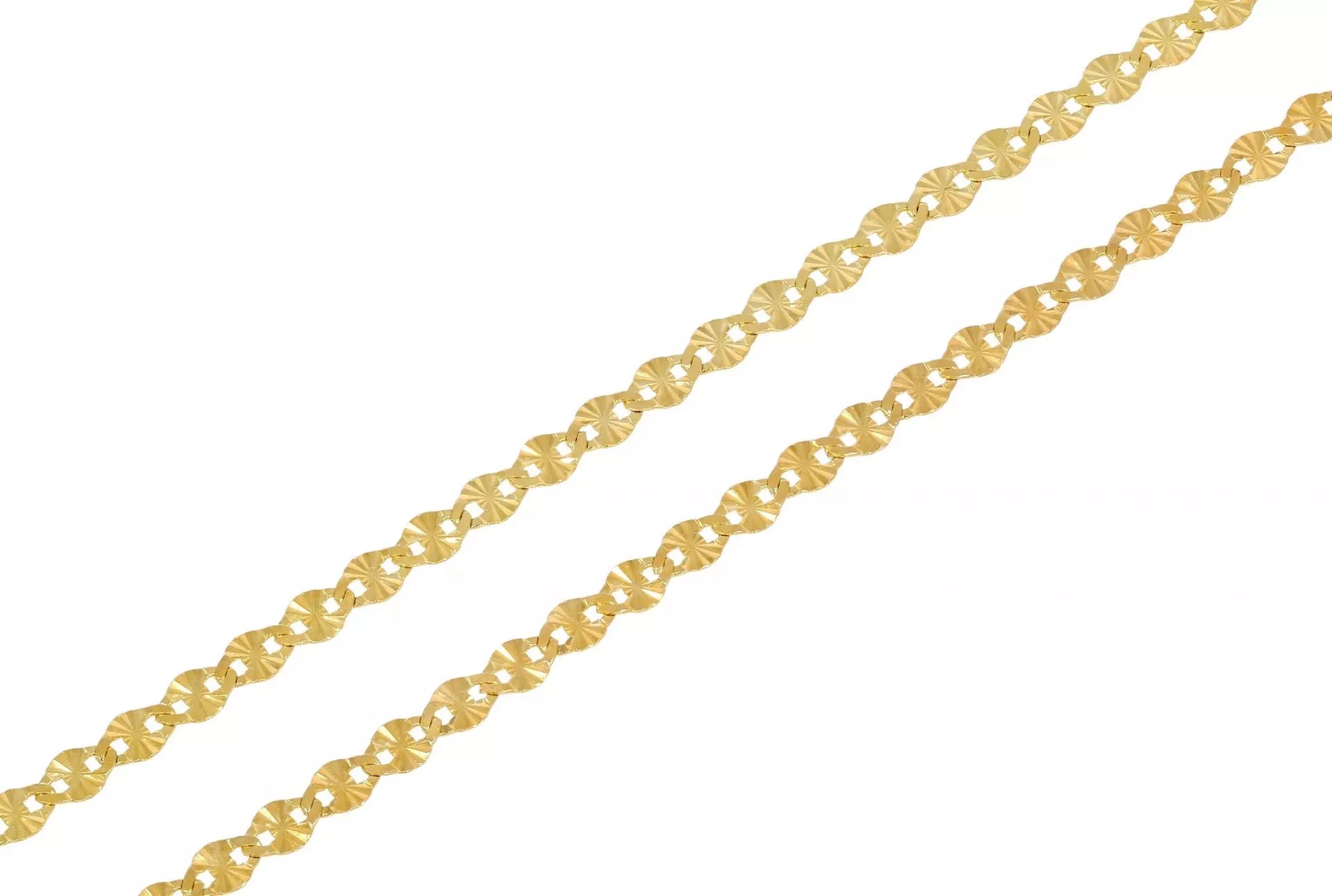 Zlatá retiazka 462 182 € Pekná zlatá retiazka zo žltého zlata tvorená z plochých očiek s hladkou lesklou povrchovou úpravou. Do košíka
